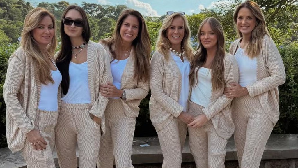 No registro, todas aparecem com calças e blusinhas beges e camisetas brancas, formando um visual harmonizado. Ao compartilhar a foto, Ticiane escreveu: “E a nossa tradição continua… eventos especiais em família, todas com a mesma roupa, do jeitinho que a gente ama e no lugar que a gente adora!”.