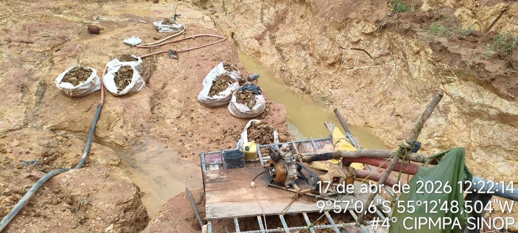 Uma outra máquina foi apreendida em Marcelândia, no dia 16 de abril, em fiscalização ocorrida em conjunto com a Polícia Militar no âmbito da Operação Amazônia de combate a ilícitos ambientais. Na área fiscalizada foram encontradas uma estrada com vestígios recentes de degradação ambiental, com toras e árvores abatidas e apreendido trator de pneu com lâmina usado para arrastar as toras.